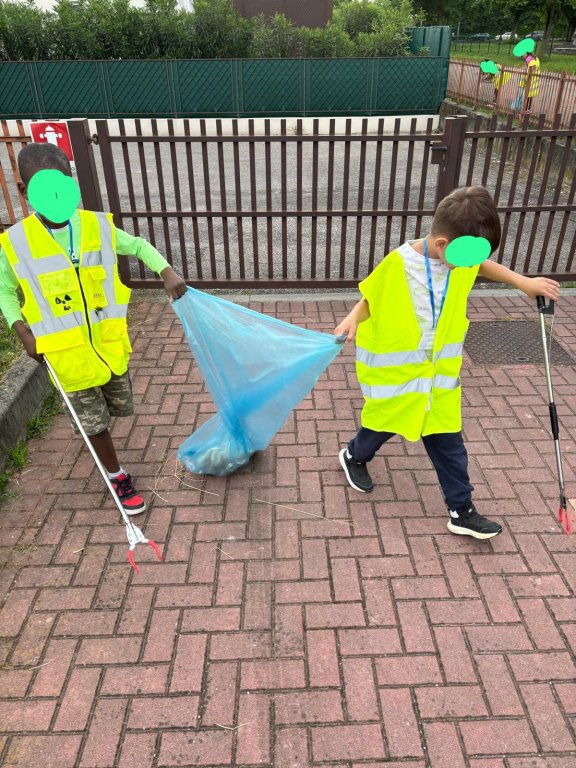 The outing with the volunteers made the area around the school cleaner and more pleasant, reinforcing the values of respect for others and the environment, collaboration, and collective responsibility.